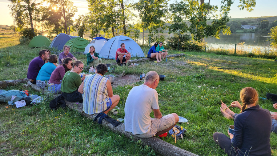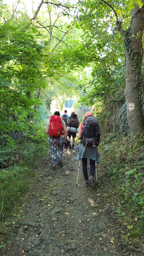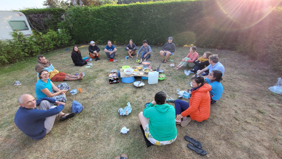Soutenus par une voiture assurant la logistique, nous avons vécu cette semaine de marche au rythme des étapes en petits groupes, des temps de prière, d’échanges sur le chemin et des retrouvailles du groupe au complet le soir, autour du repas et pour des temps de service, de partage et de jeux.