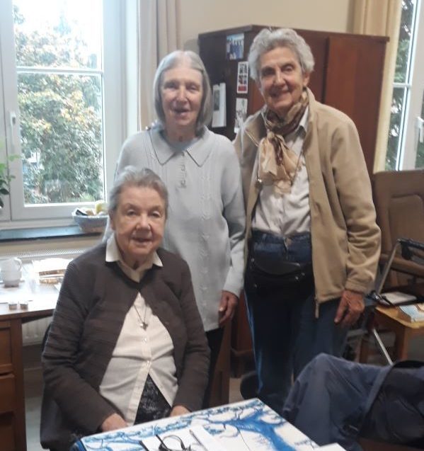 Aujourd’hui nous sommes 3 sœurs. Deux d’entre nous vivent dans la Maison de Repos Sainte-Monique, la troisième vit en habitat groupé. La responsable à distance de la communauté vit à Aubervilliers.